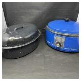 - Lot #224 - Vintage Blue 6 Qt Nesco Roaster Oven and Speckled Roasting Pan