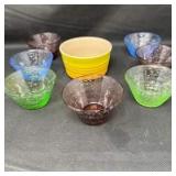 - Lot #228 - Vintage Bubble Glass Dessert Bowls + Le Creuset Stoneware Ramekin | Colorful Retro Kitchenware Set