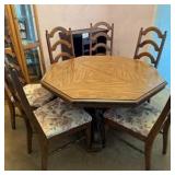 - Lot #231 - Vintage Solid Wood Octagonal Dining Table w/ 2 Leaves & 6 Ladderback Chairs – Classic Traditional Style
