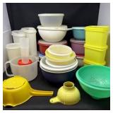 - Lot #50 - Large Vintage Tupperware Lot – Bowls, Canisters, Measuring Cups, Colander & Lids