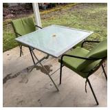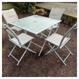 - Lot #249 - Modern Outdoor Patio Dining Set with Glass Table Top and Folding Chairs