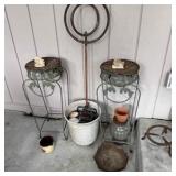 - Lot #253 - Vintage Decorative Metal Plant Stands and Accessories Lot