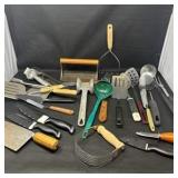 - Lot #56 - Vintage & Modern Kitchen Tool Lot – Knives, Utensils, Bacon Press, Choppers & More