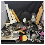 - Lot #58 - Huge Vintage Baking & Kitchen Tools Lot – Cookie Cutters, Rolling Pins, Whisks, Measuring Cups & More