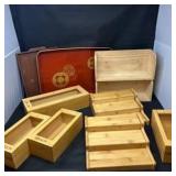 - Lot #60 - Bamboo Kitchen Storage & Organizer Lot – Snack Boxes, Tea Shelf, Step Organizer & Serving Trays