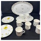 - Lot #61 - Vintage Floral China Lot – Royal Victoria Platters, Mikasa Maxima Mugs & Decorative Plates