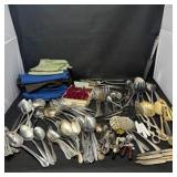 - Lot #63 - Vintage Mixed Metal Flatware and Serving Utensils Collection
