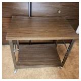 - Lot #73 - Rolling Two-Tier Side Table / Utility Cart on Casters – Woodgrain Finish, Compact Storage Cart