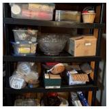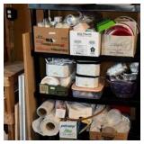 - Lot #197 - Large Black Plastic Storage Shelf Loaded w/ Baking, Party & Kitchen Supplies – Shelf Included