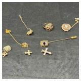 - Lot #159 - 10K Gold Jewelry Lot – Stick Pin, Ring, Religious Pins & Enamel Pieces – 16.11 Grams