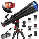 (60). Telescope,Telescope for Adults High Powered, 90mm Aperture 900mm Professional Refractor Telescopes for Kids & Beginners, Magnification 450X,for Planet Observation with Stainless Tripod & Phone Adapter