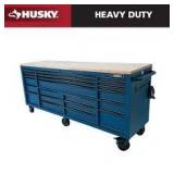 Husky Tool Storage Heavy Duty 84 in. W x 24 in. D Matte Blue Mobile Workbench Cabinet