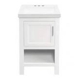 (36). Home Decorators Collection Sedgewood 48.5 in. W x 18.75 in. D x 34.375 in. H Single Sink Bath Vanity in White with Arctic Solid Surface Top