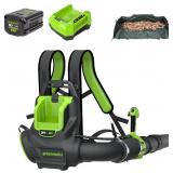 (78) Greenworks 80V 800 CFM Cordless Backpack Blower with Leaf Tarp - 4.0Ah Battery & Rapid Charger, Cruise Control, Turbo Button