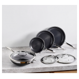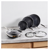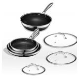 (28) HexClad Hybrid Nonstick 7-Piece Cookware Set, 8", 10", and 12" Pans with Lids, and 10" Wok, Stay-Cool Handles, Dishwasher and Oven-Safe, Induction Ready, Compatible with All Cooktops