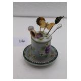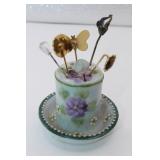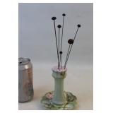 1001 - Antique Porcelain Hat Pin Holder & Hat/Hair Pins