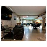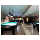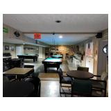 Included Equipment/Furnishings: 2 Diamond pool tables, billiard equipment, tables & chairs, televisions, signage, ice maker, refrigerators, freezers, deck furniture, small appliances, serving tables, and more.