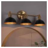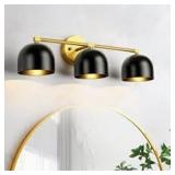 Zevni Modern 3-Light Black Bathroom Vanity Light, 22.5 in. Bowl Shape Bath Lighting Brass Gold Wall Sconce