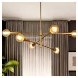Uolfin Transitional Dining Room Chandelier 31 in. Modern Sputnik Chandelier 6-Light Brass Gold Tiered Kitchen Island Chandelier