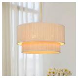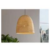 - Gold layered rattan shade with linen interior for soft lighting