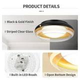 JAZAVA 15 in. 18-Watt Modern Black Integrated LED Flush Mount with Striped Clear Glass
