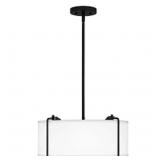 Brookley 4-Light Matte Black Shaded Pendant Light with White Fabric Shade