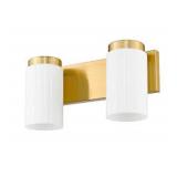 Phix 13.5 in. 2-Light Champagne Bronze with Greige and White Living Room Wall Sconce Light.