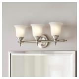 Olgelthorpe 22 in. 3-Light Brushed Nickel Bathroom Vanity Light Fixture with Bell Shaped Frosted Glass Shades