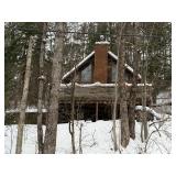Chalet-style home with 3 bedrooms and 1 bath, offering approximately 960 sq. ft. of living space, located in a quiet setting. The property includes two lots selling together with a total of 0.79 acres: the main lot with the home has 0.415± acres, while a second adjoining lot has 0.39 acres. The property offers views of and rights to a private lake, with access to beaches, pool, and tennis courts. Conveniently located near ski areas and snowmobile trails.