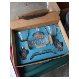 • ANTIQUES & COLLECTABLES • 4-pc condiment set silverplate * nice Dazey red top #8 glass churn * wooden hand-crank wringer * (2) 1-gal whiskey crocks * several belt buckles * Shriner’s caps * #3 Marshall Pottery churn * maple footed floor lamp * Chinese checkers tin * #2 whiskey crock * wooden child’s dresser * child’s bench * Herbal Brewery Co. 1-gal whiskey dispenser crock * Roy Rogers pistol * old Lone Ranger & other small 1950's books * #8 Pittsburg crock w/crack * old hand mirrors * nice camel back trunk w/tray * old book matches * old bottle stoppers * Ford Jubilee tractor * Philco Bakelite tube radio * barber shop items * 1-gal stoneware crock * Howdy Duty alarm clock * Gland-O-Lake poultry wall clock * old straw dispenser * child’s 3-wheel wooden tricycle * (2) pink dresser lamps * glass fly trap * Hex sign * old bellows * Walt Disney bank * old ladies’ hats * wooden cutting boards * rug beaters * wooden boxes * wooden bread box * vintage wire dish drainer * old pictures * metal cereal box * metal canister set * chalk board * copper pans * old books * folding sewing rocker * pattern-back rocker * brass spiral stairstep wall shelf * rubboard * egg basket * silverplate flatware in case * unique brass ashtray * cat-design wooden box * Hohner harmonica * old mashers * small ornate lamp w/glass shade * perfume bottles in box * OLD CLOCKS: Linden German desk clock - Miracle brand small clock - Newhaven desk clock - marble base small clock - unique round ball globe clock - Tempis Fugit German desk clock - small mahogany desk clock - Lionel quartz clock - brass clock mission oak plant stand * marble-top coffee & end table * sad irons * old metal molds * wooden pasta maker * wooden hat mold * vintage metal floor lamp * wicker cradle * vintage ice skates * metal spittoon * doilies * jar lifters * apple basket * brass scales * sifters * old wooden bowls * lots of old kitchen utensils * enamelware * carbide light * copper hat ashtray * child’s rocker * old kerosene can * child’s wooden folding table * metal chicken wall hangings * Hanson scales * metal matchbox holder * • FURNITURE • cherry desk by Hooker w/hutch top * metal 3-tier cart * wall decor * wicker rocker by Pearson * oak queen bed complete & (2) night stands * (2) easy chairs & ottoman * twin bed * large glass top wooden coffee table * pine 3-drawer nightstand * round wooden lamp table * pine 2-door cabinet & coffee table w/drawers * (2) 8x10 rugs * wall pictures * blue easy chair * pink half table * wall clock * dining table & chairs * pine sofa table * leather swivel easy chair * blonde nightstand * Bonsai trees * oak gentlemen’s chest & 9-drawer dresser by Stanley * Sony stacking stereo in cabinet * ottoman * lamp table * fan on stand * pine quilt rack * 5-drawer file * swing-away floor lamp * Sunbeam mixer w/bowls * 2-drawer file w/open top * • GLASSWARE • large pottery vase * small perfume bottles * paper weights * American Prescutt dinner table service & breakfast set in boxes * Santa cookie jar * painted cow in box * iridescent glass * bells * Fenton master salt * medicine bottles * old jelly jars w/original lids * pink depression platter, plates & bowls * Japan ginger jars * powder boxes * Japan figures * (2) adv. milk jugs * Winart pitcher & others * Arthur wooden horsehead & lionhead pitcher * lots of piggy banks * Fenton hand painted bear * Royal Copley handled vase * beer steins * hand painted & signed vase * large pitcher & bowl set * blue bird figures * red fairy lamp * carnival compote * • MISC. & TOOLS • sewing * colander * director's chair * new Craftsman impact set in box * Shop Vac * air tool set in box * 4' & 6' levels * Husqvarna 136 chain saw * Lincoln AC 225 stick welder w/leads & leathers * fruit jars * darts * cookbooks * 33 albums * stuffed animals * dolls * scale rule * (2) Starrett calipers * picture frames * binoculars * yarn winder * Dooney & Burke purse * Landis 12" leather cutter machine SN: 17013 * Landis leather stitching machine * 17" Double T saddlery roughout saddle - looks like new! * hand-stitched quilt * cast iron double match holder * |