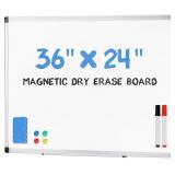 Magnetic White Board for Wall, 36" x 24" Dry Erase Board Kit with 2 Magnetic Dry Erase Markers, 4 Magnets, Eraser, Pen Tray & Mounting Kit – White Board Dry Erase for Home, Office, School
