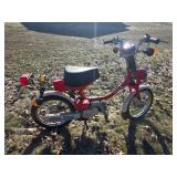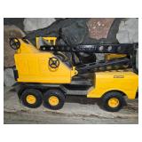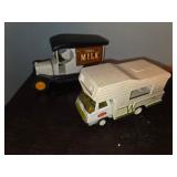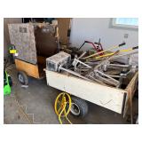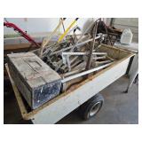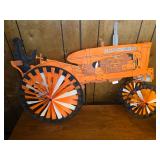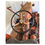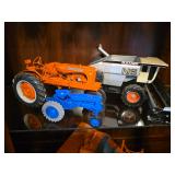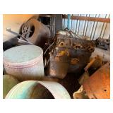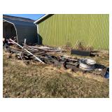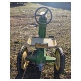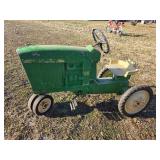 Misc. & Fun Toys and fun including John Deere 20 pedal tractor, Yamaha QT2 stroke scooter SER# 3L 5–240340, Vintage wagon wheel, Allis-Chalmers WD45 Orange mailbox, Allis-Chalmers Style Painted Milk cans with Decals, John Deere umbrella, Toy Tractors, Evinrude E 18 HP Fas Twin Boat Motor, etc.