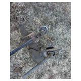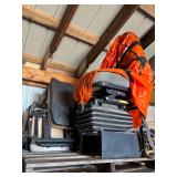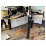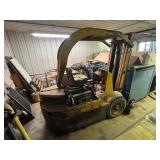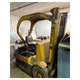 Heavy Indoor / Outdoor Equipment: Atlas 8,000lbs 110 V Single Phase Hydraulic 4 Post Vehicle Lift- Model GAVAGEPY08AW, Hyster Space Saver Model YT-40 4,000 lbs. Cap Propane Powered Fork Lift SER# T63842, Attachable backhoe, heavy duty pull behind cement lawn roller, approx.. 7ft. adjustable angle back blade,