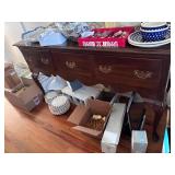 A lot of home to explore !! Vintage corner cabinet, lots of silver plated serving pieces, baskets, silver chest, decorative table and floor lamps, server, 1 drawer decorative table, lots of nautical decor, framed arts and prints, china sets, vintage glassware, grandfather clock, 4 drawer storage chest, copper drink server, CD's and books, electronics, binoculars, bookcases, bar stools, kitchen items and small appliances, quilts, linens and towels, office chair, 4 post bed, highboy dresser, dresser, end tables, clothes, some costume jewelry, kids toys, brass pieces, tea table, leather sofa, outdoor rocker, outdoor swivel chairs, outdoor chairs, stained glass, recumbent bike, storage armoire, area rugs, antique secretary, mirrors, bed, Christmas and other holiday decor, folding chairs, hand, yard and power tools, bike, grill, outdoor pillows / cushions, shelving, metal garden table / 4 chairs and tea cart, wicker loveseat, power washer and MUCH MORE !!