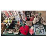 FAMILY ROOM...Upholstered 3 Seater Sofa, Pair Red Leather Club Chairs, Vtg Wood Coffee Table, Low 3 Tier Entertainment Center, Large Flat Screen TV, Signed/Numbered Artwork/Prints/Local Beach Art extensive list, Vtg Oval Mirror, Religious Items, Disney Endless Quality "Vtg Table Cloths/Linens/Napkins/Runners/Doilies/Chair Covers for Every Holiday, Christmas Decor from Yesteryear, Holiday Decor Galore/Garland/Stockings/Pointsetta/Ornaments/Vtg Angel Tree Topper/light up Porcelain Tree/Enormous Flat Screen TV, Ect KITCHEN...Modern Round Dining Room Table w/4 Chairs, Vtg Wood Two Tier console Table/Bench, Vtg Turn of the Century Wood Ice Box, Mid-Century Wrought iron high back bistro chairs, Small Kitchen Appliances/Tools, Large Flat Screen TV, Copper Pot Collection, Villroy & Boch Enamel Pots, Huge Selection of Pots/Pans/Baking/Bakeware, Coffee/Tea/Expresso Machines,/Cups/Saucers Cuisineart Food Processor/Electric Opener/Can Openers, Keurig, Osterizer/Braun/ Blenders, Glassware/Serveware/Flatware/Plasticware/Bakeware/Tupperware/Decorware, Cutlery/Utensils, Canisters/Pyrex/Anchor Hocking/Corningware, Cookbooks, Bread Boxes, , Kitchen Utensils/Flatwareand Much Much more.. HALLWAYS...Huge Selction of Dick LaBonte Artwork, Signed /Numbered Artwork...Pauline Mickle, Andrew Wyeth, Elise Barnett, 3 Lingerie Wood Dressers, Country Style Wood Cabinet, Beach Tapestry, Gladys Boalt Ornaments(rare), Brand New Designer Table Linens... OFFICE...Mid-Century Modern Bedroom Set.. Triple Dresser w/Mirroe/Highboy Dresser/2 Night Stands, Office Desk/File Cabinets/Desk Chairs/Shredders/HP Printers/Office Equipment/Supplies/Cables, Electronics/Stereo Equipment, Cds/Dvd's, World Globe, Frames/Stationary/Books/Games, Cameras (Polaroid, Vivitar/Kodak/Cannon...Figuratively Lamps, Vtg Perfume Bottle/Compact/Hat Pin/Hair Clips/Key Chains/Pill Box Collection, Vtg Glives/Hats(Leather/Wool/Winter)