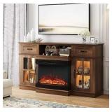 Fireplace TV Stand up to 65'' TVs 3-Sided Glass Entertainment Center with Electric Fireplace Heater Glass Doors and Drawers Fir
