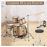 22 Inch Adult Drum Set, 5-Piece Full-Size Drums Kit with Cymbal Stands, Hi-hat Stand, Sticks, Drum Pedal,Stool,Floor Tom
