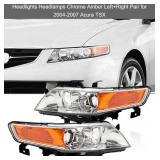 Headlights Headlamps Chrome Amber Left+Right Pair for 2004-2007 Acura TSX