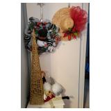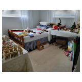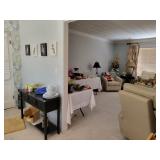 Misc.: Howard Miller grandfather clock, framed art work, table & bath linens, ladies clothes (size sm./8), shoes & purses, vintage ceramic Christmas tree, vintage Rushton Santa, Mark Roberts Santa & Fairie, putz houses, Whirlpool under the counter refrigerator, Craftsman standing tool box, cooking magazines, decorator pillows, several card table/chair sets, Lane cedar chest w/key, metal outdoor bench, flower pots, hand & power tools, gardening supplies, lots of serving trays/bowls/dishes, hand thrown pottery, crystal & glassware, large silk flower arrangements & wreaths, decorations for Christmas, Thanksgiving, Easter, 4th of July, St. Patrick's Day, Mardi Gras, Halloween & more. |