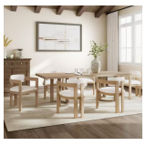 (12) Harper & Bright Designs High-End Lines 7-Piece 95 in. Light Natural Dining Sets with 6 Curved Beige Upholstered Chairs
