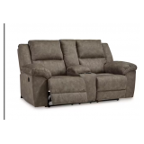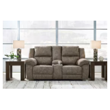 (136) Signature DESIGN BY ASHLEY Laresview 81 in. Solid Faux Leather 2-Seater Reclining Loveseat with Cup Holders and Console in Gray