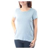 RACHEL ROY $49 MSRP Womens Light Blue Slitted Short Sleeve Jewel Neck Hi-Lo Top Size: S |