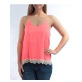 MISS CHIEVOUS $19.99 MSRP Womens Pink Lace Detail Spaghetti Strap V Neck Top Size: M |