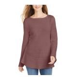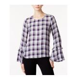 MAISON JULES $59.50 MSRP Womens Purple Plaid Bell Sleeve Jewel Neck Blouse Size: XS |