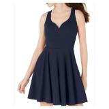 B DARLIN $59 MSRP Womens Fit + Flare Above The Knee Dress Navy Cut Out Sleeveless V Neck Juniors 11\12 |