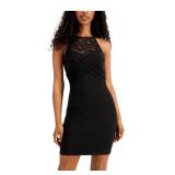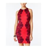B DARLIN $59 MSRP Womens Body Con Short Dress Red Zippered Sleeveless Halter Party Printed Juniors 1\2 |