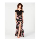B DARLIN $99 MSRP Womens Fit + Flare Full-Length Skirt Black Slitted Evening Floral Print Juniors 1\2 |