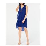 INC $99.50 MSRP Womens Navy Ruffled Sleeveless V Neck Midi Hi-Lo Cocktail Dress Size: XS |