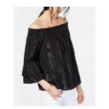 INC $69.50 MSRP Womens Black Metallic Bell Sleeve Off Shoulder Top Size: XS |