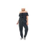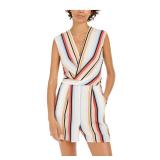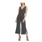 DKNY $129 MSRP Womens Black Striped Sleeveless V Neck Cropped Party Jumpsuit Size: 14 |